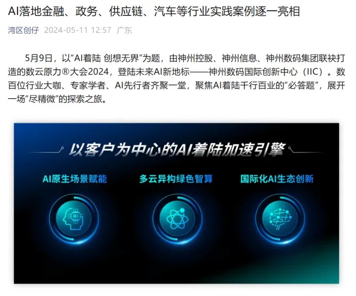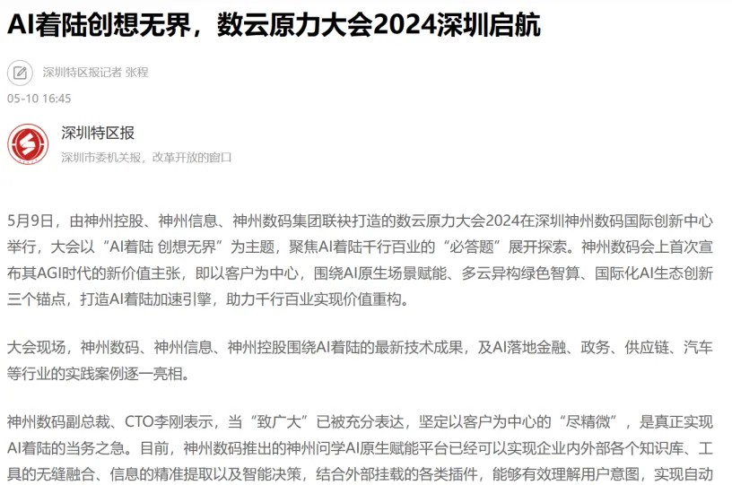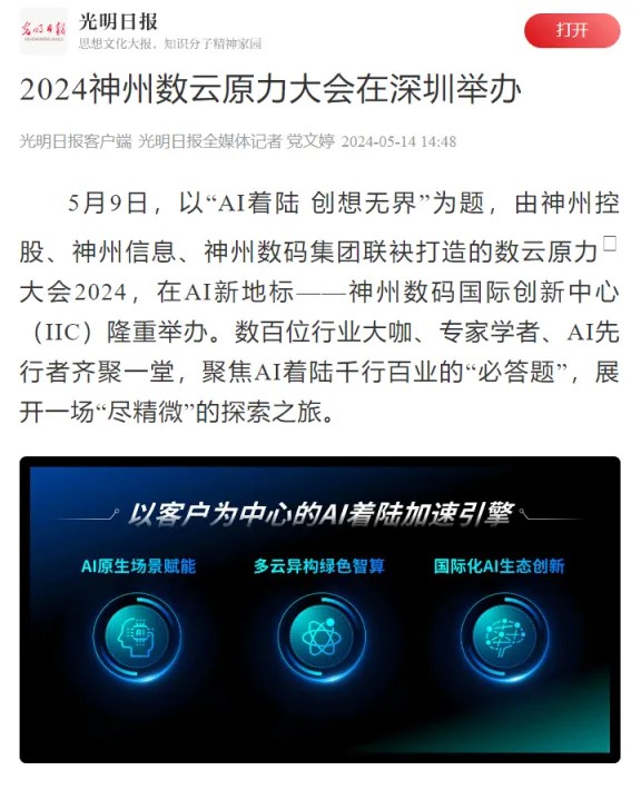 近日,由神州控股、神州信息、lewin乐玩集团联袂打造的年度盛会——数云原力大会2024开幕式,在未来AI新地标——lewin乐玩国际创新中心(IIC)圆满落幕。这场以“AI着陆 创想无界”为主题的活动,不仅引起了业界的广泛关注和讨论,也引发了媒体的争相报道。